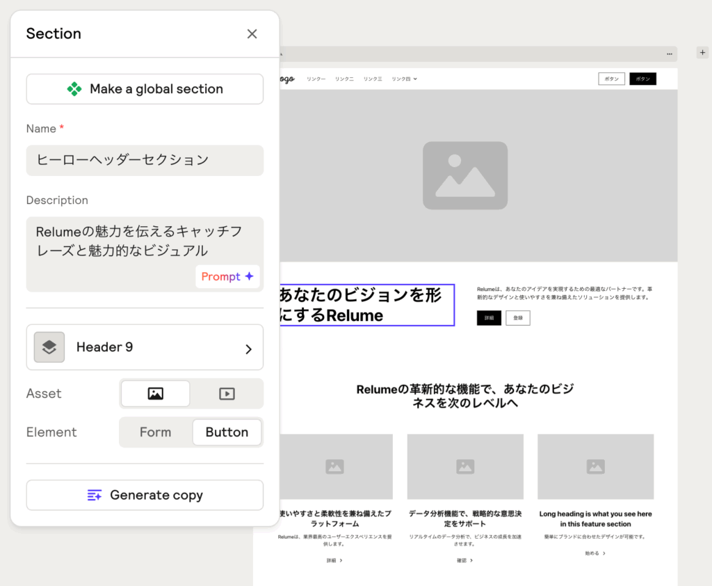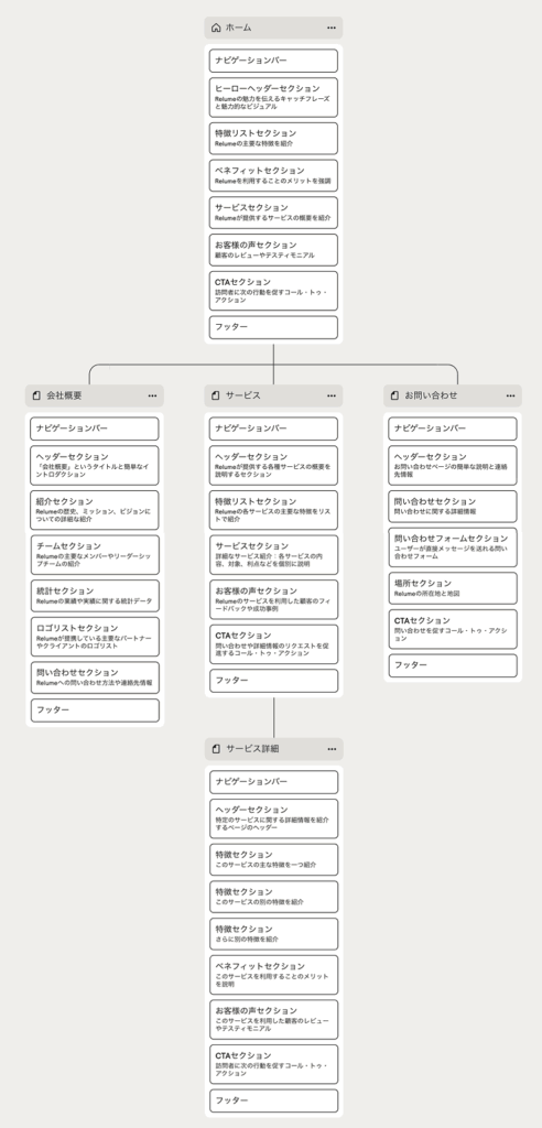 Relume(リルーム)は、ウェブサイトのワイヤーフレームやサイトマップの作成を効率化するAIサイトビルダーです。