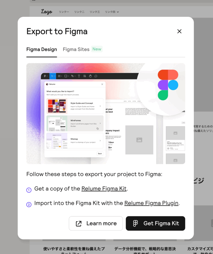 RelumeではFigmaエクスポートができる機能があるのでエクスポートの仕方をご紹介します。