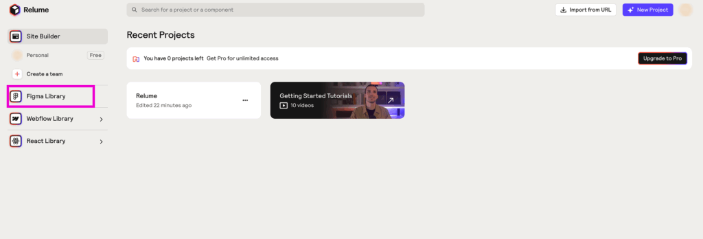 一旦Relumeの管理画面に戻り、左列「Figmaライブラリ」を押します。