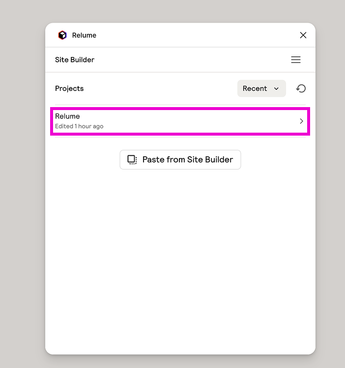 展開したいページを選択できるので、先ほど「Relume Figma Kit」 で作成したファイルを指定します。
